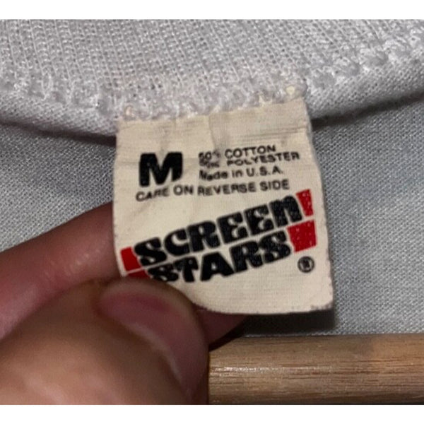 The Z100 New York City Master Blaster Dairy Queen Graphic T-Shirt Vintage 80s in size M is a vibrant and nostalgic piece of men's clothing. Made from a comfortable polyester and cotton blend, this short-sleeve shirt features a classic crew neck design and a colorful graphic print with a vintage 80s theme. Perfect for those who appreciate retro designs and iconic radio stations, this machine washable shirt is suitable for all seasons and is a great addition to any wardrobe. Made in the United States by Screen Stars, this T-shirt is a unique and eye-catching choice for fans of 80s and 90s music.